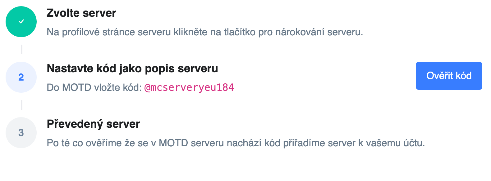 Pokud tomu tak je, a server byl restartován je možné, že se změna MOTD ještě neprojevila v našem systému. Zkuste znovu stisknout tlačítko „Ověřit kód“ zhruba za 5 minut.
